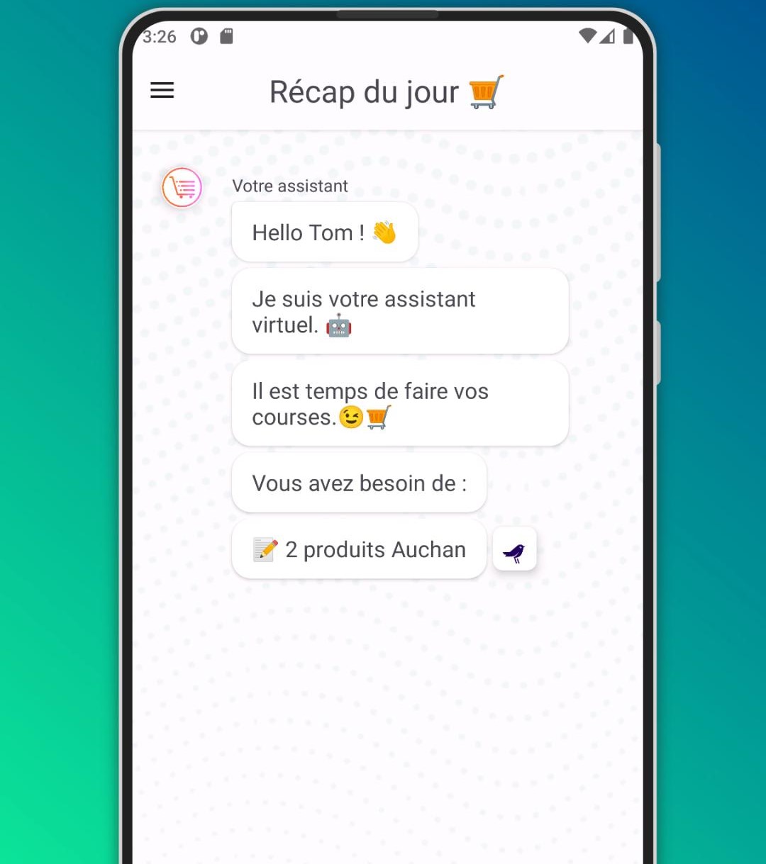 A virtual assistant is available to give users an overview of the shopping to be